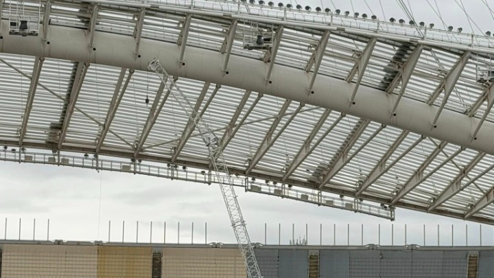 Στο βορειοανατολικό άνω τόξο του στεγάστρου του Κεντρικού Σταδίου του ΟΑΚΑ πραγματοποιούνται εργασίες ελέγχου και συντήρησης των κοχλιωτών συνδέσεων, με στόχο τη διασφάλιση της στατικής επάρκειας, της μακροχρόνιας ανθεκτικότητας και της συνολικής λειτουργικότητας του μεταλλικού φορέα.