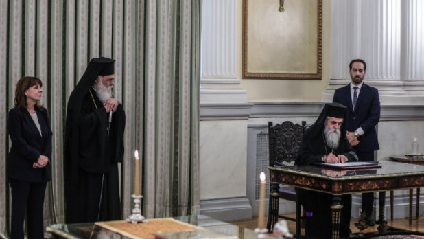 Τη διαβεβαίωση ενώπιον της Προέδρου της Δημοκρατίας, Κατερίνας Σακελλαρόπουλου, και παρουσία του αρχιεπισκόπου Αθηνών και πάσης Ελλάδος, Ιερωνύμου, έδωσαν σήμερα το πρωί οι τέσσερις νέοι μητροπολίτες Ηλείας, Αθανάσιος, Γόρτυνος και Μεγαλοπόλεως, Νικηφόρος, Αιτωλίας και Ακαρνανίας, Δαμασκηνός και Δράμας, Δωρόθεος.