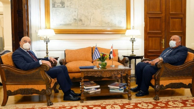 Οι διμερείς σχέσεις και η ευρύτερη περιφερειακή συνεργασία στο επίκεντρο της συνάντησης του Ν. Δένδια με τον ΥΠΕΞ της Αιγύπτου