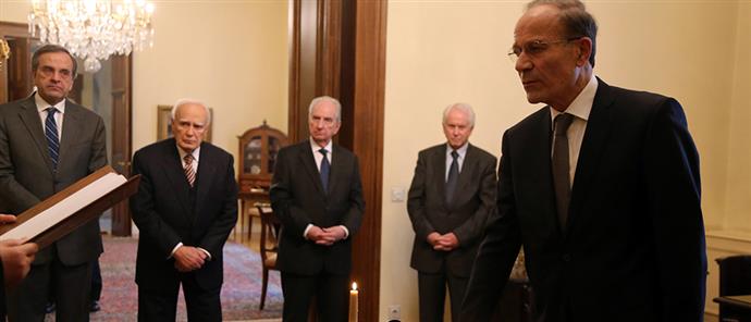 Ολοκληρώθηκε το μεσημέρι η τελετή παράδοσης - παραλαβής στο υπουργείο Εσωτερικών. Ο απερχόμενος υπουργός Εσωτερικών Αργύρης Ντινόπουλος καλωσόρισε τον υπηρεσιακό υπουργό Μιχάλη Θεοχαρίδη. Δήλωσε ότι «το υπουργείο Εσωτερικών είναι σε πλήρη ετοιμότητα για τη διεξαγωγή των εκλογών της 25ης Ιανουαρίου 2015» και ευχήθηκε καλή επιτυχία και στον κ. Θεοχαρίδη.