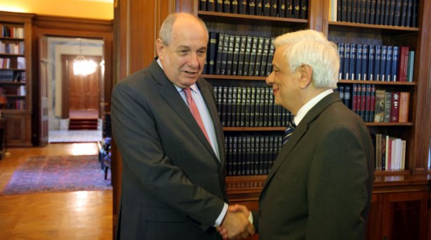 Από την πλευρά του, ο υφυπουργός Επικρατείας -αφού επισήμανε ότι έχει να περάσει το κατώφλι του Προεδρικού Μεγάρου από την εποχή του Κωνσταντίνου Καραμανλή- εξέφρασε τη χαρά του για το γεγονός ότι «σας έχουμε σήμερα Πρόεδρο της Δημοκρατίας σε μια δύσκολη εποχή, που πρέπει όλοι να ενώνουμε τις δυνάμεις μας» και πρόσθεσε: «Και από την δική μας πλευρά, και με επικεφαλής, όπως ξέρετε, τον Πάνο Καμμένο, είμαστε σε μια κυβέρνηση, η οποία-τουλάχιστον- πορεύεται περήφανα, διαπραγματεύεται περήφανα και νομίζω ότι θα εκπληρώσουμε μέσα σε βάθος τετραετίας αυτά που έχουμε υποσχεθεί στον ελληνικό λαό».
