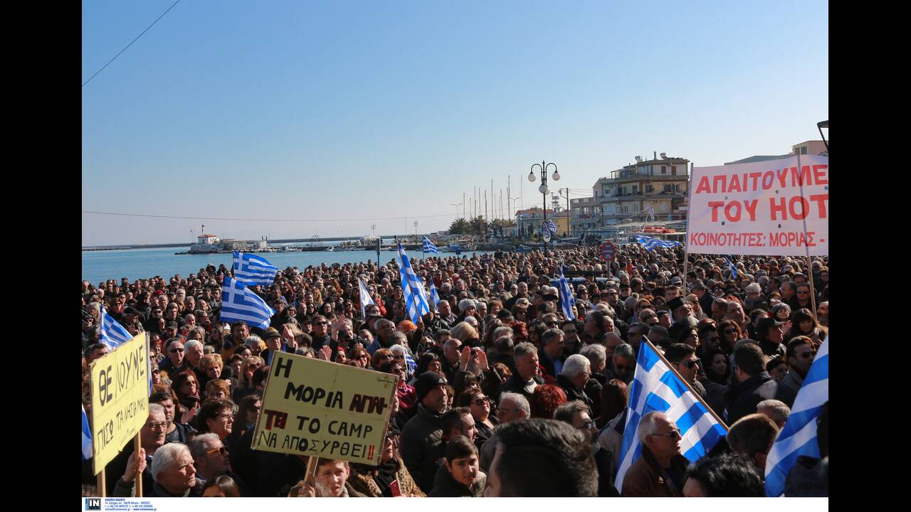 Την ίδια ώρα, μεγάλη συγκέντρωση διαμαρτυρίας των κατοίκων πραγματοποιήθηκε και στη Μυτιλήνη για τις επιπτώσεις από το Προσφυγικό και μεταναστευτικό ζήτημα. Βασικό σύνθημα της Περιφέρειας Βορείου Αιγαίου που διοργάνωσε τη διαμαρτυρία με άλλους αυτοδιοικητικούς φορείς «θέλουμε πίσω τα νησιά μας, θέλουμε πίσω τη ζωή μας».