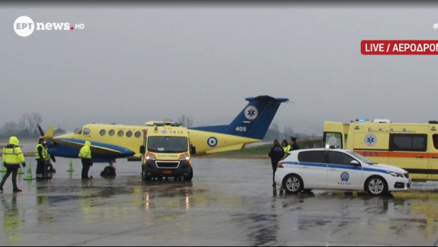 Προσγειώθηκε, πριν από λίγο, στο αεροδρόμιο «Μακεδονία» της Θεσσαλονίκης, το αεροσκάφος - ασθενοφόρο του ΕΚΑΒ, που μεταφέρει δύο εκ των τριών τραυματιών του πολύνεκρου τροχαίου δυστυχήματος με οπαδούς του ΠΑΟΚ, που συνέβη την περασμένη Τρίτη 27 Ιανουαρίου, στη Ρουμανία.