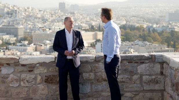 Στον Ιερό Βράχο της Ακρόπολης ξενάγησε τον Γερμανό καγκελάριο ο Κυρ. Μητσοτάκης