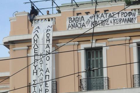 Συμβολική κατάληψη του δημαρχείου στον Βύρωνα, από αλληλέγγυους στον Ν. Ρωμανό