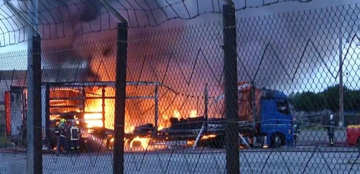 Όπως διαπιστώθηκε, η φωτιά είχε εκδηλωθεί σε ένα φορτηγό αλλά επεκτάθηκε σε άλλα τρία φορτηγά. Άμεσα έφθασαν στο σημείο ισχυρές πυροσβεστικές δυνάμεις, οι οποίες δίνουν μάχη με τις φλόγες.