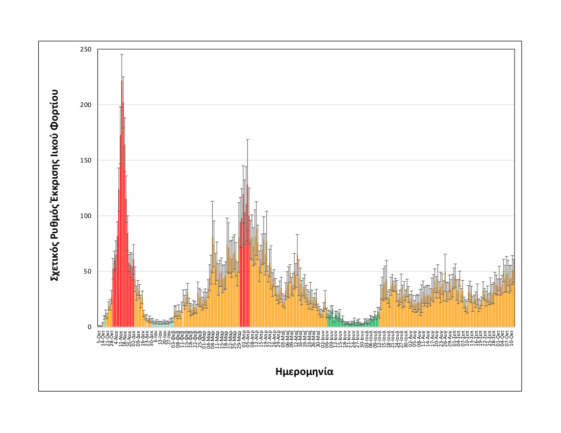 Όπως φαίνεται στα διαγράμματα που παρουσιάζει το ΑΠΕ-ΜΠΕ, το ιικό φορτίο απεικονίζεται στις μετρήσεις από την αρχή του Οκτωβρίου γύρω από την υψηλότερη τιμή του τελευταίου τριμήνου.