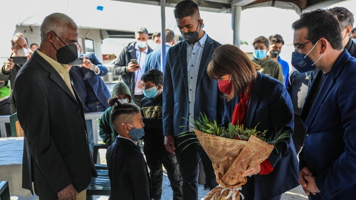 Ο πρόεδρος του καταυλισμού Παρασκευάς Καραγκούνης ευχαρίστησε την κ. Σακελλαροπούλου για την επίσκεψη της και της είπε πως όλοι οι Ρομά περιμένουν πως και πως να κατασκευαστούν οι κατοικίες που έχουν χρονικό ορίζοντα διετίας.