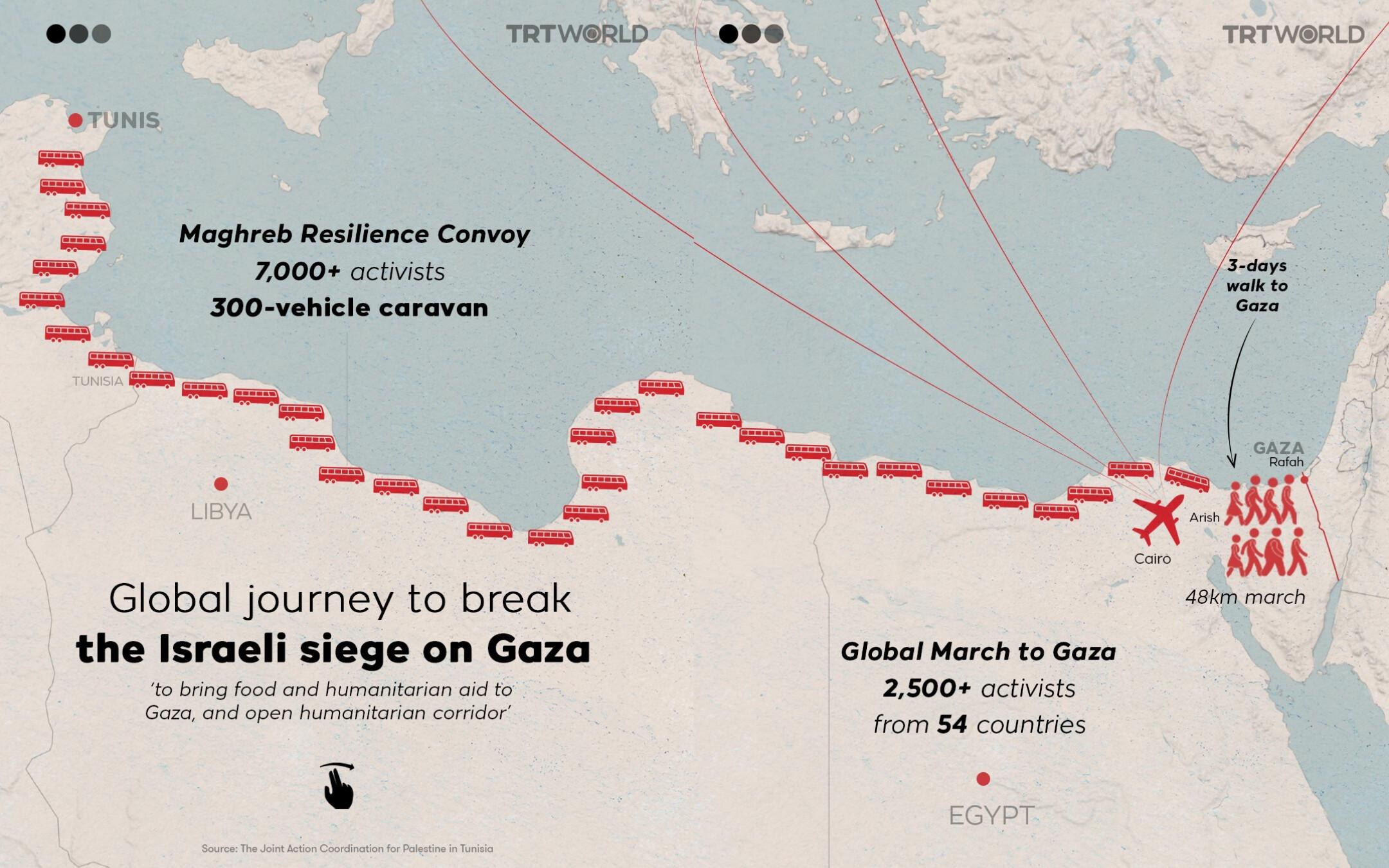 Στόχος του είναι να διασχίσει πολλές χώρες της περιοχής, περνώντας από την Αλγερία, το Μαρόκο, τη Λιβύη και τέλος την Αίγυπτο, με τελικό προορισμό τη Λωρίδα της Γάζας.