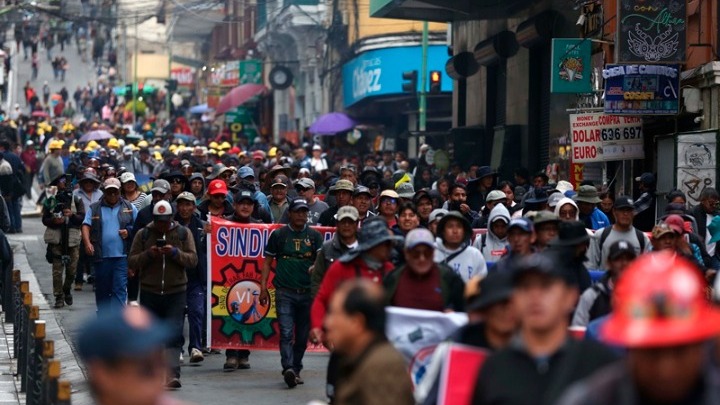 Μετά την υιοθέτηση του εκτελεστικού διατάγματος τον Δεκέμβριο, η κυριότερη συνομοσπονδία εργατικών συνδικάτων της χώρας, η COB (Central Obrera Boliviana), οργάνωσε μαζικές κινητοποιήσεις στην πρωτεύουσα Λα Πας, κάποιες από τις οποίες αμαυρώθηκαν από συγκρούσεις με την αστυνομία.