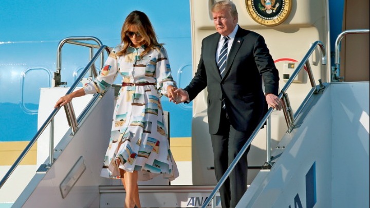 Ο Αμερικανός πρόεδρος Ντόναλντ Τραμπ και η πρώτη κυρία των ΗΠΑ Μελάνια Τραμπ βρίσκονται στην Ιαπωνία για μία τετραήμερη επίσημη επίσκεψη. Το προεδρικό αεροσκάφος των ΗΠΑ (Air Force One) προσγειώθηκε στο διεθνές αεροδρόμιο (Haneda) στο Τόκιο.