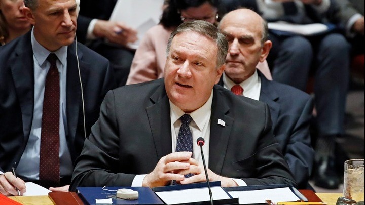 Παίρνοντας τον λόγο, ο υπουργός Εξωτερικών των ΗΠΑ Μάικ Πομπέο είπε ότι η διεθνής κοινότητα "πρέπει να στηρίξει τον λαό της Βενεζουέλας για χάρη της ειρήνης" στην περιοχή. Ο επικεφαλής της αμερικανικής διπλωματίας υπογράμμισε ότι το καθεστώς του Νικολάς Μαδούρο "καταστέλλει" επί χρόνια τον λαό και ότι χιλιάδες Βενεζουελάνοι φεύγουν από τη χώρα, γεγονός που μπορεί να αποσταθεροποιήσει την περιοχή.