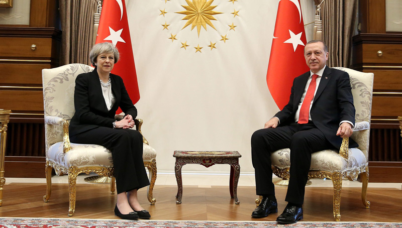 Σε δηλώσεις μετά τις συνομιλίες που είχε στο προεδρικό μέγαρο, η Μέι είπε πως είναι "υπερήφανη" που η Βρετανία στάθηκε δίπλα στην Τουρκία για την προάσπιση της δημοκρατίας της στη διάρκεια της απόπειρας πραξικοπήματος της 15ης Ιουλίου.