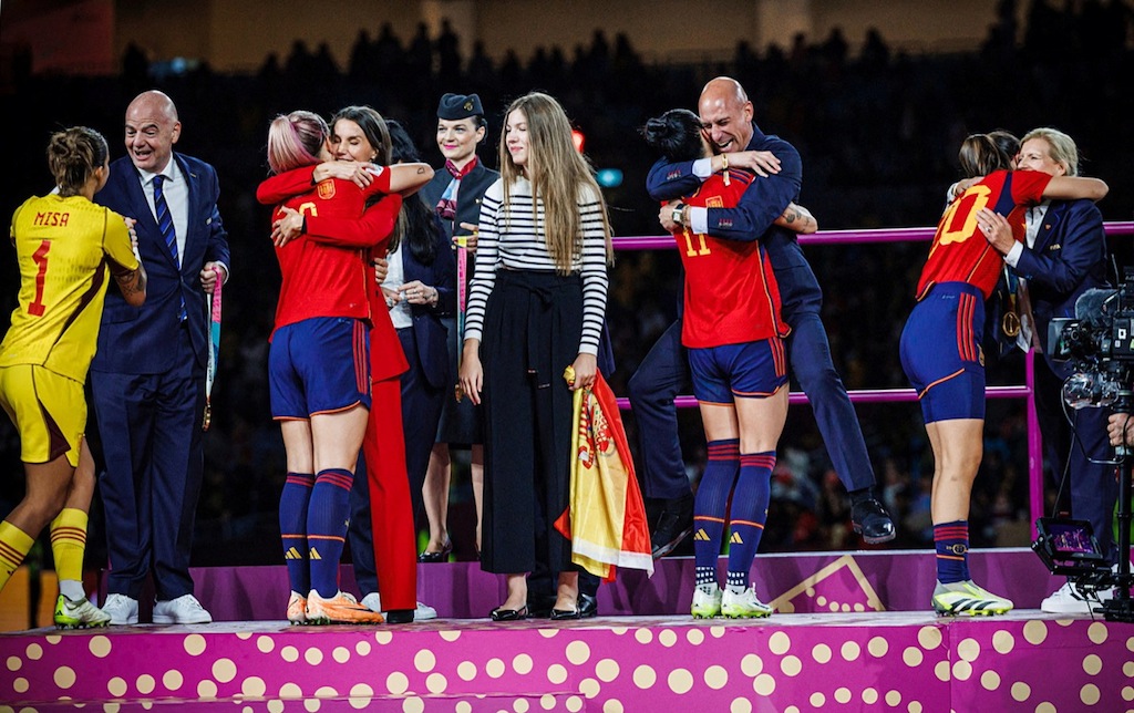 Αρκούσαν, βέβαια, μερικά δευτερόλεπτα για να αμαυρωθεί η μεγάλη αυτή νίκη, με ένα ανάρμοστο περιστατικό που μονοπωλεί τους τίτλους των ειδήσεων έκτοτε. Ο Λούις Ρουμπιάλες, πρόεδρος της ισπανικής ομοσπονδίας ποδοσφαίρου, που ήταν ανάμεσα σε αυτούς που βρίσκονταν στο βάθρο για να συγχαρούν μία-μία τις παίκτριες της Ισπανίας κατά την απονομή του κυπέλλου, υπήρξε υπερβολικά διαχυτικός, φιλώντας την παίκτρια Τζένι Χερμόσο στο στόμα.