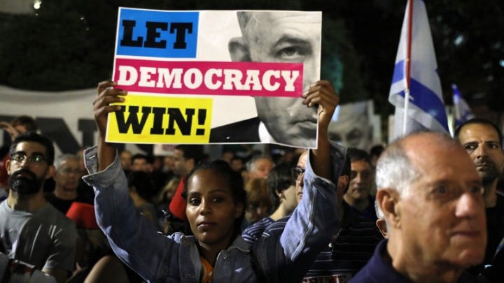 Χιλιάδες Ισραηλινοί διαδήλωσαν το βράδυ του Σαββάτου εναντίον του πρωθυπουργού Μπενιαμίν Νετανιάχου, που θεωρείται δεδομένο πως βρίσκεται πίσω από υπό συζήτηση σχέδιο νόμου το οποίο θα του εξασφαλίσει ασυλία από οποιαδήποτε ποινική δίωξη, καθώς και άλλα μέτρα, που οι συμμετέχοντες στην κινητοποίηση κατήγγειλαν ότι θα σημάνουν το τέλος της δημοκρατίας στη χώρα τους.
