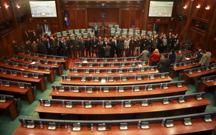Κόσοβο: Πανό, με σύνθημα «Προσέχετε, πίσω σας κάθονται διεφθαρμένοι ψεύτες», άνοιξαν βουλευτές της αντιπολίτευσης στη Βουλή