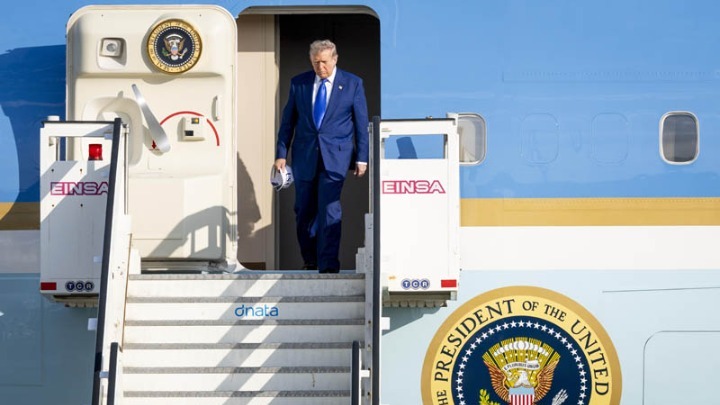 Το προεδρικό αεροσκάφος των ΗΠΑ (Air Force One) προσγειώθηκε το βράδυ της Τρίτης στο αεροδρόμιο Στάνστεντ του Λονδίνου, λίγο μετά τις 21:00 (τοπική ώρα, 23:00 ώρα Ελλάδος). Ο αμερικανός πρόεδρος Ντόναλντ Τραμπ και η σύζυγός του Μελάνια επιβιβάστηκαν στη συνέχεια σε ελικόπτερο προκειμένου να μεταβούν στην κατοικία του πρεσβευτή των ΗΠΑ.