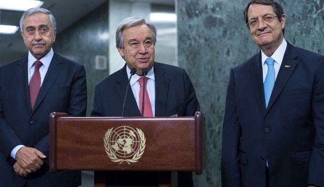 Την δέσμευσή του να συνεχίσει την προσπάθειά του «προκειμένου να επιτευχθούν συνθήκες αναφοράς που θα χρησιμεύσουν ως σημείο εκκίνησης συναίνεσης για σταδιακές, ουσιαστικές και προσανατολισμένες σε αποτέλεσμα διαπραγματεύσεις με την συντομότερη δυνατή ευκαιρία» και να διερευνήσει με τις δύο πλευρές και τις εγγυήτριες δυνάμεις την δυνατότητα σύγκλησης άτυπης συνάντησης «πέντε συν τα Ηνωμένα Έθνη» σε κατάλληλο στάδιο, εκφράζει σε δήλωσή του ο Γενικός Γραμματέας του ΟΗΕ Αντόνιο Γκουτέρες, μετά το τέλος της άτυπης τριμερούς συνάντησής.