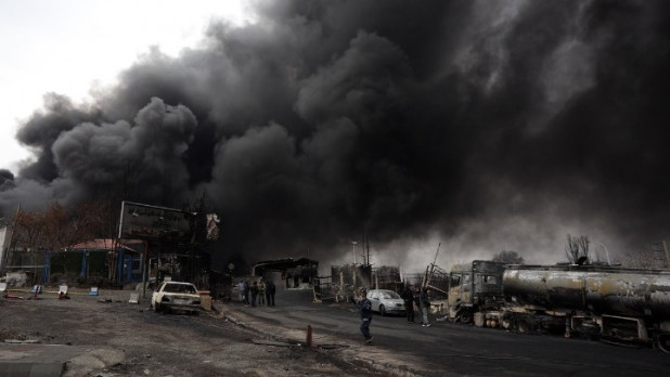 Στήλες καπνού υψώνονταν από τα νότια προάστια, που έχουν εγκαταλειφθεί από μεγάλο μέρος των κατοίκων τους, σύμφωνα με οπτικό υλικό του AFPTV.