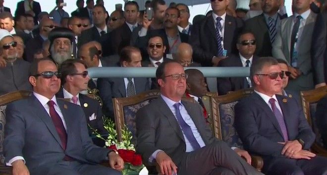 Μεταξύ των πολλών προσκεκλημένων στην τελετή των εγκαινίων ήταν επίσης ο εμίρης του Κουβέιτ, ο βασιλιάς του Μπαχρέιν, ο βασιλιάς της Ιορδανίας και οι πρόεδροι του Σουδάν, της Παλαιστινιακής Αρχής και της Υεμένης. Στο περιθώριο των εκδηλώσεων ο Γάλλος πρόεδρος Ολάντ θα έχει διμερείς επαφές και με τον Έλληνα πρωθυπουργό Αλέξη Τσίπρα, με τον Παλαιστίνιο πρόεδρο Μαχμούντ Αμπάς και με τον Αιγύπτιο πρόεδρο.