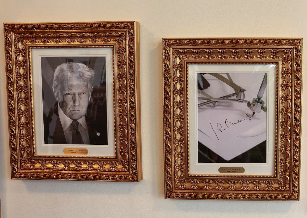 Ο πρόεδρος των ΗΠΑ Ντόναλντ Τραμπ δήλωσε χθες Παρασκευή ότι ακυρώνει εκτελεστικά διατάγματα και άλλα έγγραφα που είχε υπογράψει ο δημοκρατικός προκάτοχός του Τζο Μπάιντεν χρησιμοποιώντας autopen, δηλαδή μια αυτόματη πένα υπογραφής, και δεν φέρουν τη φυσική υπογραφή του – δηλώσεις με αβέβαιες νομικές συνέπειες (στη φωτογραφία του Reuters/Kevin Lamarque, επάνω, εικόνα αυτόματου στιλό που υπογράφει ως Μπάιντεν, στη θέση ενός πορτρέτου του, δίπλα σε μια φωτογραφία του Τραμπ στον Λευκό Οίκο).