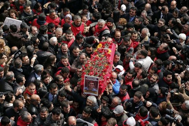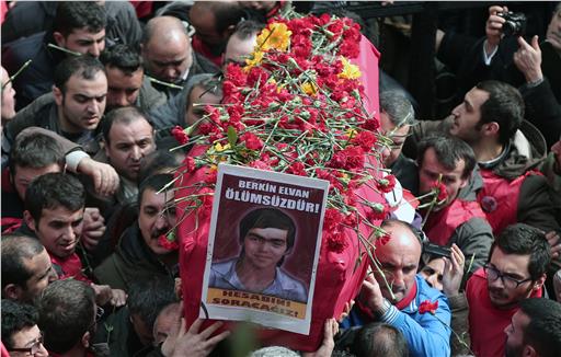 Σε κλίμα αγανάκτησης αποχαιρετούν δεκάδες χιλιάδες κόσμου τον 15χρονο Μπερκίν στην Κωνσταντινούπολη, που κατέληξε μετά από εννιά μήνες σε κώμα εξαιτίας χτυπήματος στις αντικυβερνητικές διαδηλώσεις του περασμένου καλοκαιριού. Πολιτικοί της αντιπολίτευσης παρόντες στην κηδεία, «σήμερα πενθεί όλη η χώρα» λέει και η ίδια η κυβέρνηση σε μία προσπάθεια να προλάβει τις εντάσεις.