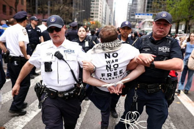 Δεκάδες άνθρωποι, οι οποίοι συγκεντρώθηκαν κατόπιν πρόσκλησης εβραϊκής αμερικανικής οργάνωσης στρατευμένης στην υπεράσπιση των δικαιωμάτων των Παλαιστινίων, συνελήφθησαν χθες Δευτέρα (13/04) κατά τη διάρκεια διαδήλωσης στη Νέα Υόρκη, σύμφωνα με το Γαλλικό Πρακτορείο.