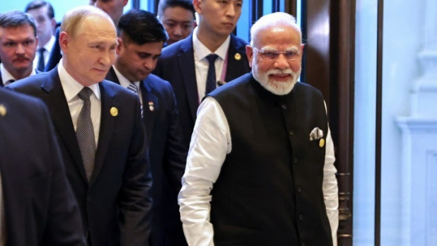 Ο Βλαντίμιρ Πούτιν και ο Ναρέντρα Μόντι, οι χώρες των οποίων συνεργάζονται αξιοσημείωτα εντός της ομάδας των BRICS, είχαν ήδη επιδείξει την εγγύτητά τους στις αρχές Σεπτεμβρίου στη σύνοδο κορυφής στην Κίνα.
