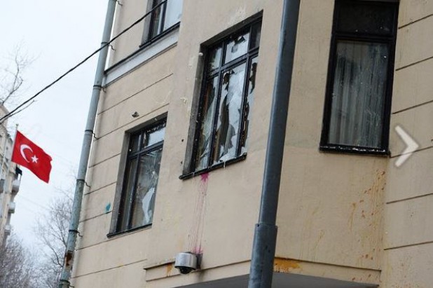 Ρωσία: Διαδηλωτές πέταξαν πέτρες και έσπασαν τζάμια της πρεσβείας της Τουρκίας στη Μόσχα