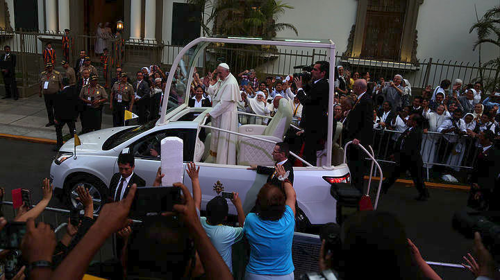 Ο πάπας Φραγκίσκος έφθασε την Πέμπτη στο Περού, όπου ο Πρόεδρος Πέδρο Πάμπλο Κουτσίνσκι απηύθυνε έκκληση στον ποντίφικα να τον βοηθήσει να αποκαταστήσει την κοινωνική ειρήνη στη χώρα όπου πριν από έναν μήνα μια πολιτική κρίση παραλίγο να οδηγήσει στην καθαίρεσή του και οδήγησε σε μια δεύτερη. Ο αργεντινός προκαθήμενος της ρωμαιοκαθολικής εκκλησίας αφίχθη στο Περού, δεύτερο σταθμό της περιοδείας του σε κράτη της Λατινικής Αμερικής, από τη γειτονική Χιλή. Εκεί επιδίωξε να αποκαταστήσει την δημόσια εικόνα μιας εκκλησίας τρωθείσας από τα σκάνδαλα σεξουαλικής κακοποίησης παιδιών από ιερείς.
