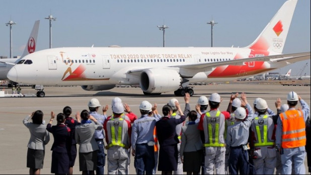 Αεροσκάφος με αποχρώσεις του Τόκιο 2020 έφυγε σήμερα από το διεθνές αεροδρόμιο Χανέντα για να μεταφέρει πίσω στην Ιαπωνία από την Αθήνα την Ολυμπιακή φλόγα, χωρίς όμως αντιπροσωπεία από τους διοργανωτές, λόγω ανησυχιών για την πανδημία των κοροναϊού.