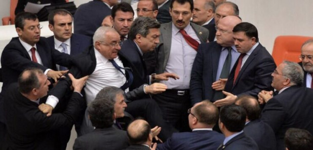 Οι βουλευτές του DEM κατέθεσαν πρόταση για κοινοβουλευτικό έλεγχο και προχώρησαν σε διαμαρτυρία μπροστά στην έδρα, υψώνοντας πλακάτ. Αντέδρασαν οι κυβερνητικοί βουλευτές του ΑΚΡ, κινήθηκαν εναντίον των συναδέλφων τους του DEM, φωνάζοντας συνθήματα κατά της οργάνωσης ΡΚΚ και τους πήραν τα πλακάτ, τα οποία έσκισαν. Η ένταση πήρε διαστάσεις με αποτέλεσμα να προκληθούν επεισόδια με τους βουλευτές να σπρώχνουν και να γρονθοκοπούν ο ένας τον άλλον.