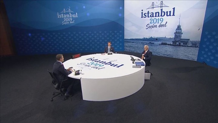Συντονιστής της εκπομπής ήταν ένας βετεράνος τούρκος τηλεοπτικός παρουσιαστής, ο Ισμαήλ Κουτσούκαγια. Ο Μπιναλί Γιλντιρίμ, ο υποψήφιος της «Λαϊκής Συμμαχίας» όπως ονομάστηκε το σχήμα του κυβερνώντος Κόμματος Δικαιοσύνης και Ανάπτυξης (AKP) που συμμετέχει στις εκλογές στην Κωνσταντινούπολη, αναμετρήθηκε με τον υποψήφιο της «Εθνικής Συμμαχίας», όπως βαπτίστηκε το σχήμα του αντιπολιτευόμενου Ρεπουμπλικανικού Λαϊκού Κόμματος (CHP).