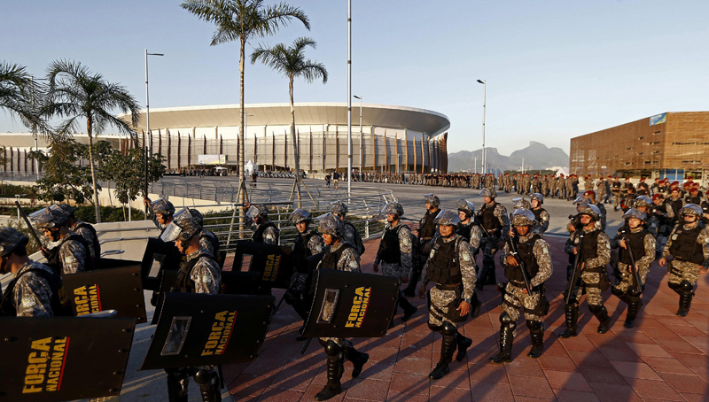 Περίπου 3.000 στρατιώτες ενισχύουν τις δυνάμεις ασφαλείας της Βραζιλίας που θ' αναλάβουν τη φύλαξη των αθλητικών εγκαταστάσεων στους Ολυμπιακούς Αγώνες που θα διεξαχθούν στη χώρα τον επόμενο μήνα. Πέρα από τις αθλητικές εγκαταστάσεις, οι στρατιώτες θ' αναλάβουν τη φύλαξη των συγκοινωνιακών-μεταφορικών υποδομών, του διεθνούς αεροδρομίου, του μετρό, αλλά και του οδικού δικτύου.