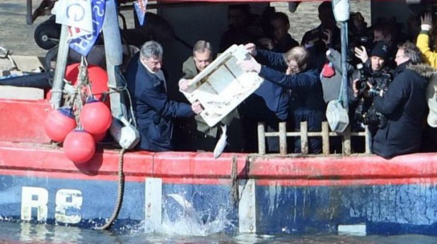 Ο Νάιτζελ Φάρατζ, ένας από τους θερμότερους υπέρμαχους του Brexit, και άλλοι υποστηρικτές άδειασαν καφάσια με μπακαλιάρους στο ποτάμι ως διαμαρτυρία ενάντια στις ποσοστώσεις που, όπως υποστηρίζουν, τους αναγκάζουν να απορρίπτουν αλιεύματα που είναι κατάλληλα για κατανάλωση.