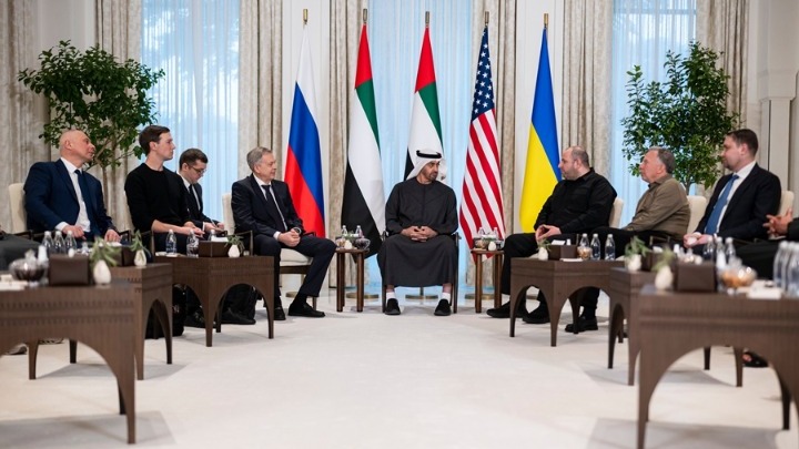 Οι τριμερείς συνομιλίες για τον τερματισμό του σχεδόν τετραετούς πολέμου ξεκίνησαν στα Ηνωμένα Αραβικά Εμιράτα χθες. Ο Ουκρανός πρόεδρος Βολοντίμιρ Ζελένσκι δήλωσε ότι υψηλόβαθμοι εκπρόσωποι από τις ουκρανικές ένοπλες δυνάμεις και την υπηρεσία πληροφοριών του στρατού θα συμμετάσχουν σήμερα στις συνομιλίες.