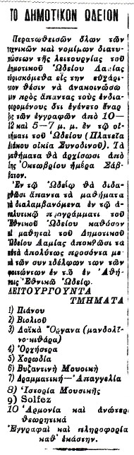 6. Το Δ.Σ. του Μουσικού Συλλόγου συγκρότησαν οι : Κ. Βέλλιος, φαρμακοποιός (πρόεδρος), Β. Ματθαίου, ξυλέμπορος (αντιπρόεδρος), Κ. Καρατζάς, σταθμάρχης ΣΕΚ, Ι. Πολύζος, υπάλληλος, Θ. Κόκκινος, καθηγητής, Ν. Αθανασίου, έμπορος και Χρ. Ξενιάς, δικηγόρος. [εφ. Η ΕΠΑΡΧΙΑ, φ. 1096, σ. 4, 20-6-1936, Λαμία]