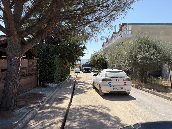 Στο διπλανό τετράγωνο όμως, κάποιος εργολάβος κάνει έργα μέσα στο οδόστρωμα και οι δρόμοι είναι κλειστοί.