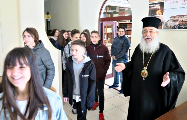 Τους εκπαιδευτικούς και μαθητές υποδέχτηκε ο Μητροπολίτης και μίλησε στα παιδιά για το τι είναι η Μητρόπολη Φθιώτιδας, ποιες υπηρεσίες περιλαμβάνει το Πνευματικό – Διοικητικό Κέντρο. Τους έδωσε μια λεπτομερή εικόνα των 246 Ενοριών και στάθηκε ιδιαίτερα στην κοινωνική και φιλανθρωπική πλευρά της Εκκλησίας, του Κέντρου Αγάπης στο οποίο καθημερινά σιτίζονται 100 και πλέον άποροι και έχοντες ανάγκη συνάνθρωποί μας. Επίσης τους ενημέρωσε για τα 3 Γηροκομεία που λειτουργεί, τις κατασκηνώσεις και αναφέρθηκε και στην πολιτιστική προσφορά της τοπικής μας Εκκλησίας με τη λειτουργία του Κειμηλιαρχείου και άλλων δράσεων.