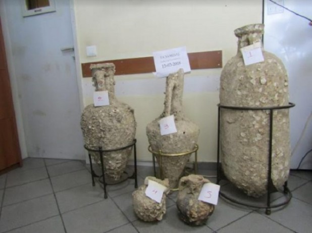 Η Εφορία Αρχαιοτήτων καλείται να εκτιμήσει την αξία των αμφορέων που είχε στο σπίτι του ένας 43χρονος που συνελήφθη για παράβαση της νομοθεσίας περί αρχαιοτήτων .Κατασχέθηκαν (3) αμφορείς, (1) αμφορίσκος και (1) ακέραια φιάλη χωρίς λαβές