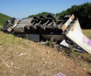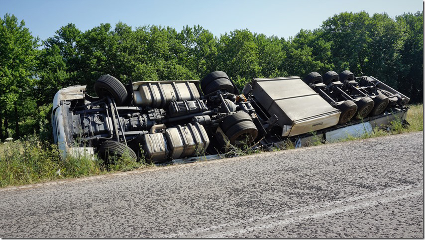 Λίγα φωτοστιγμιότυπα από τη νέα εκτροπή [ευτυχώς χωρίς ανθρώπινα θύματα] νταλίκας, κοντά στην Αμφίκλεια – στην κτηματική περιοχή μπλο, που λέγαμε οι παλιότεροι.