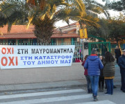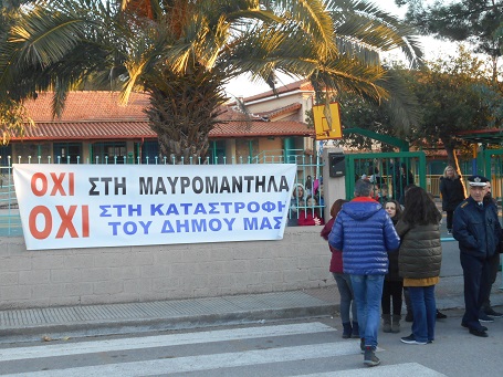 Σήμερα το πρωί οι διαμρτυρίες των κατοίκων μεταφέρθηκαν εξω απο το Δημοτικό σχολείο της Μεγάλης Βρύσης .