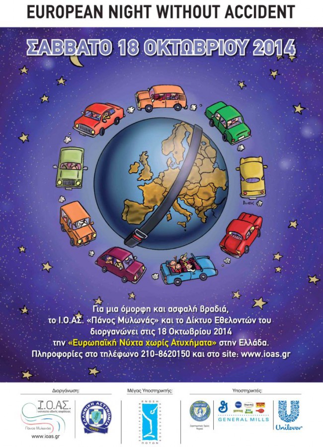 Αυρίο Σάββατο 17 Οκτωβρίου, θα πραγματοποιηθεί για 9η συνεχή χρονιά, η Ευρωπαϊκή Νύχτα χωρίς Ατυχήματα σε 25 πόλεις της Ελλάδας, ταυτόχρονα με τη μεγάλη Πανευρωπαϊκή διοργάνωση σε άλλες 28 χώρες και για πρώτη φορά φέτος θα συμμετάσχει και η πόλη της Λαμίας.