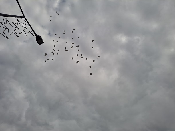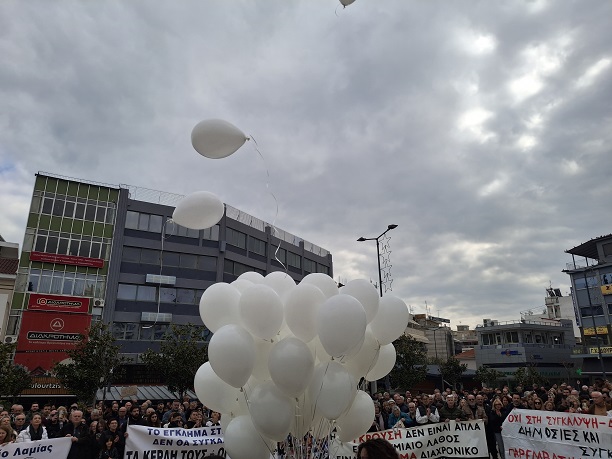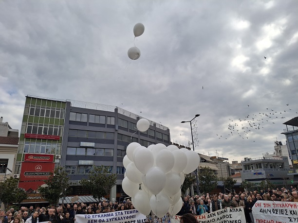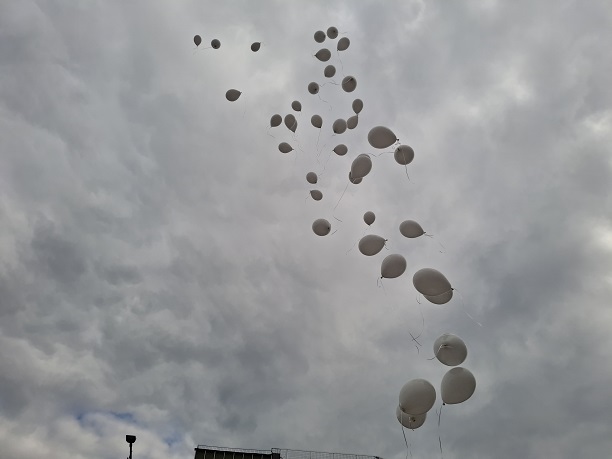 Πολύ συγκινητική στιγμή, ήταν όταν παιδιά που βρέθηκαν στη συγκέντρωση, άφησαν 57 λευκά μπαλόνια να ταξιδέψουν όσο πιο ψηλά μπόρεσαν στον ουρανό, για να καταφέρουν να φτάσουν τις 57 αδικοχαμένες ψυχές, όπως είπε η κα Κατόπη.