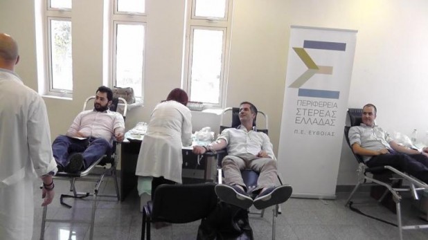 Μήνυμα ελπίδας και ζωής , έδωσαν απ’ την Χαλκίδα, με την εθελοντική τους αιμοδοσία ο Περιφερειάρχης Στερεάς Ελλάδας Κώστας Μπακογιάννης. Ο Αντιπεριφερειάρχης Εύβοιας  Φάνης Σπανός και ο Αντιπεριφερειαρχης Υγείας Δημήτριος Αργύρης και   Υπηρεσιακοί παράγοντες αλλά πάνω απ’ όλα οι απλοί πολίτες που ανταποκρίθηκαν στο κάλεσμα της Περιφέρειάς Στερεάς στο ξεκίνημα της Δημιουργίας Τράπεζας Εθελοντικής Αιμοδοσίας, της Περιφέρειας Στερεάς.