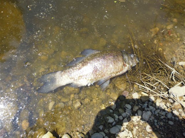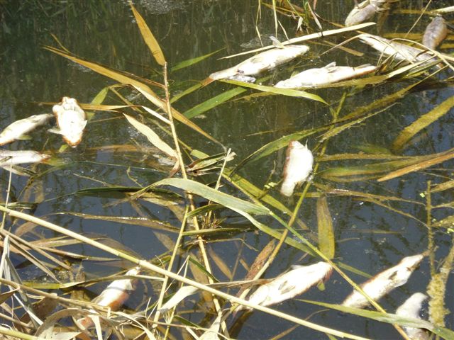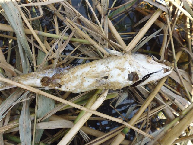 Συγκεκριμένα με μεγάλη μας έκπληξη, δύο περίπου χιλιόμετρα πριν τις εκβολές του ποταμού, πριν τα όρια της «πράσινης ζώνης» του Δέλτα, είδαμε πολλά ψάρια νεκρά, σε μέγεθος περίπου 20 εκατοστών και μεγαλύτερα. Μερικά ήταν σε μερική αποσύνθεση και μύριζαν, που σημαίνει ότι το φαινόμενο δεν είναι πολύ πρόσφατο.