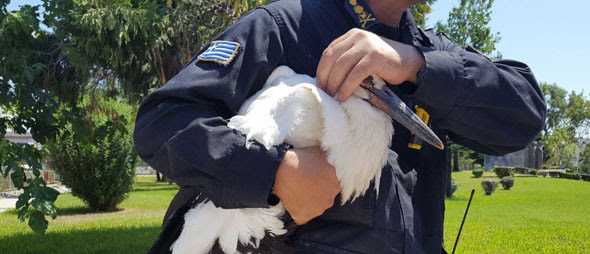 Η Πυροσβεστική επεμβαίνει παντού, έτσι και στην περίπτωση του μικρού πελαργού που έπεσε από τη φωλιά του το μεσημέρι του Σαββάτου απέναντι από το πρώην κτίριο της ΜΕΡΥΠ και νυν της Περιφέρειας.