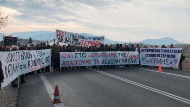 Εκεί, οι συγκεντρωμένοι παρέμειναν για πάνω από δύο ώρες, μοιράζοντας ανακοινώσεις στους διερχόμενους οδηγούς, ενώ για ένα διάστημα επέτρεψαν την ελεύθερη διάβαση των οχημάτων από τα διόδια. Αίτημα των εργαζομένων, επαγγελματιών και μικροεργολάβων είναι η απόσυρση της τροπολογίας της κυβέρνησης για τη ΛΑΡΚΟ η οποία όπως αναφέρουν στις ανακοινώσεις που διαμοίρασαν οδηγεί στο ξεπούλημα και το κλείσιμο της ΛΑΡΚΟ χωρίς καταβολή των δεδουλευμένων, τα οποία αγγίζουν τα 5 εκ. ευρώ.
