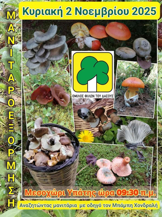 Αυτή την Κυριακή, 2 Νοεμβρίου, ο Ομιλος Φίλων του Δάσους διοργανώνει μανιταροεξόρμηση στο Μεσοχώρι Υπάτης!