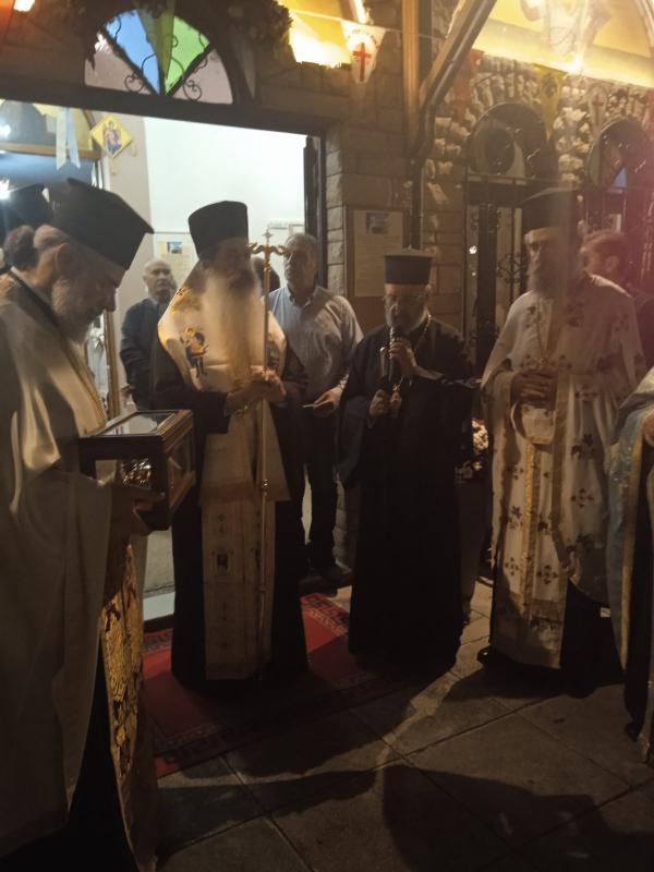 Στην συνέχεια ο Σεβασμιώτατος κ. Συμεών χοροστάτησε στον Μέγα Πανηγυρικό Αρχιερατικό Εσπερινό στο Ναό του Αγίου Δημητρίου στην Κ. Τιθορέα και ακολούθως πραγματοποιήθηκε υπό του Σεβασμιωτάτου πάνδημη Ιερά Λιτανεία.